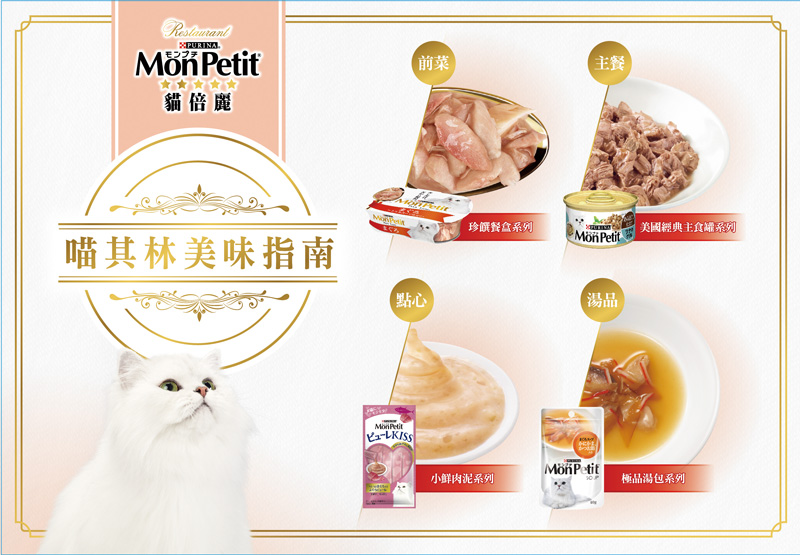 貓倍麗品牌強調奢華美味口感,打造出如同法式餐點的組合餐,
