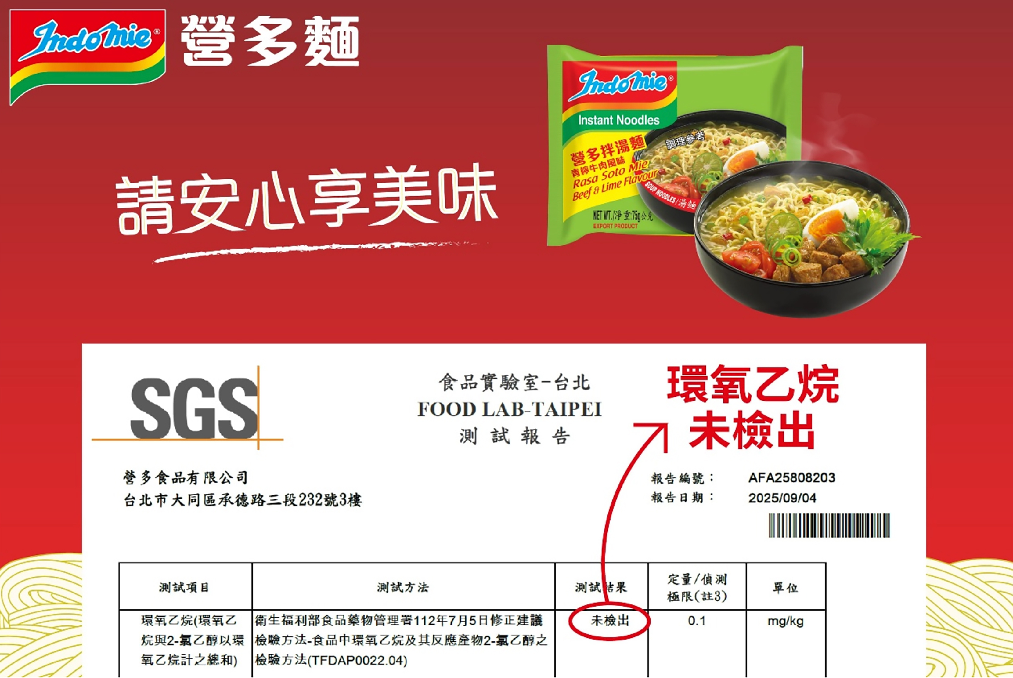 親愛的消費者,針對近日有關營多麵「班賈爾青檸風味湯麵」 調味粉包在台灣檢出環氧乙烷(EtO),本公司特此說明:目前於台灣正式進...