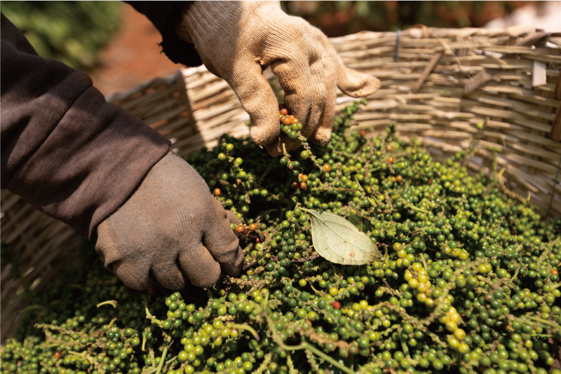 白胡椒是將成熟的果實放入水中浸泡,發酵軟化後,去除外皮,再取出果實乾燥處理,口味香辣柔和,適用於白肉或是海鮮的料理,在台菜的運用也甚廣,扁魚白菜滷、魷魚羹、水餃、酸辣湯、胡椒蝦、鹹酥雞;黑胡椒則是採收未成熟的生胡椒果實,經日曬乾燥處理,因酵素作用轉變成黑色,口味嗆辣濃郁,適合紅肉料理或西式濃湯,常見的料理如鐵板牛柳、炭火胡椒餅、客家鹹豬肉。